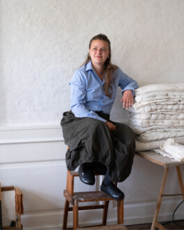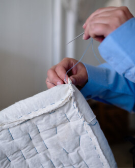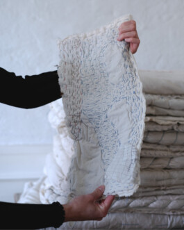 “The project investigates how we through the creation process can create and support presence and authenticity in our being in the world, leading to contemplation and calm in our everyday life. Eelgrass, from the Danish shores, in combination with natural textiles has been explored, focusing on scent, sound and tactility in combination with handcrafted techniques, aiming at heightened awareness.”