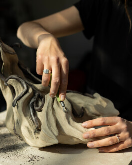 My narrative is rooted in the attentiveness to surface expression. This I approach in a collaborative method of sculpting and carving in clay. To me, carving becomes a poetic and painterly process through which I can notice and embrace the essence and vibrancy of the ‘ceramic creature’ i’m creating, allowing its traits to be exposed on the sculpted clay-body, for the audience to explore. I cherish this tranformative quality in the relation between building with and removing clay”.
