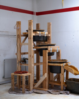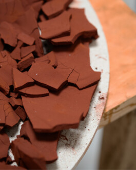 “The core of my work is earth pigments. A core that is grounded in the natural and cultural context of Denmark. Pigments that have been used for thousands of years but have slowly been forgotten and synthetically replaced. Through my work I explore how these natural and lightfast colors can once again be brought to life in a contemporary but conscious manner. My piece “Clad in Ochre” explores the possibility of using Danish ochre pigment as a brick glaze. In doing so two old Danish industries are merged: ochre and bricks. In according to their respective crafts, the bricks are handmade, burned and glazed, then stacked and now lie ready to be used.