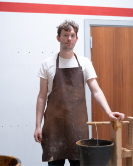 The crafts, materials, and industries that I employ the pigments within are chosen based on their respect for natural materials, crafts, and heritage. The tool I’ve chosen to showcase is a mold for brickmaking. This ancient tool is simple, easy to use and with it a skilled brick laborer can produce upwards of a 1000 bricks a day. An industrial application, where the maker and the material are at the center”.