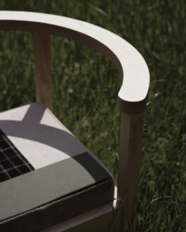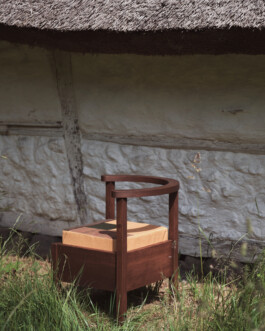 The Vraa Stool is a sculptural and functional chair that bridges past and present, local craftsmanship and responsible use of materials. The piece draws inspiration from Danish Peasant Furniture used by the rural communities between 1500-1900 in Denmark but reinterpreted through a contemporary lens. Rooted in tradition, the Vraa Stool is named after the Danish word ‘vraa’, meaning a corner. The chair is therefore having a clear sense of direction with one corner of the seat pointing forward. The project is a special collaboration with the fashion company AF AGGER to develop a piece of furniture that aligns with the company’s goal of reducing textile waste from the clothing industry. Incorporating the atmosphere and aesthetics of AF AGGER’s universe and design principles, Vraa Stool is representing beautiful leftover textiles from previous collections of AF AGGER, giving new life and value to materials that would otherwise go to waste. Created and envisioned as an inviting and sculptural piece for the home, the intention with Vraa Stool is also to create more functionality in the chair. Beyond its visual presence, the stool conceals a hidden storage room to offer a multi-functional element for modern living spaces.